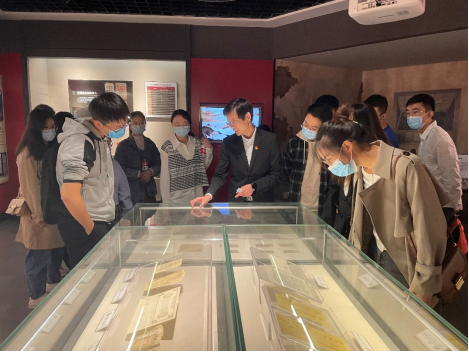随后,同学们来到中国当代财税历史展厅,该展厅分为新民主主义革命时期的财税和新中国的财税两个部分,介绍了自中国共产党成立以来百年时间内财税制度的发展变化。在童光辉老师的讲解下,同学们了解到财税制度为适应国家经济发展,在实践中不断改革创新的过程;感受到一代代财税人艰苦创业、不断探索的精神风貌。