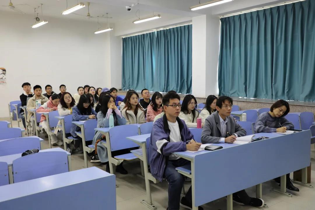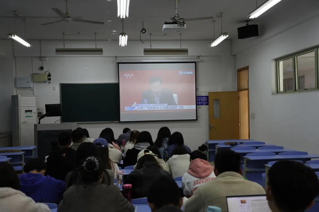 党员师生于B201室观看中共中央关于介绍党的十九届六中全会精神的新闻发布会直播,执行院长童光辉、办公室主任朱胤、辅导员吕涛以及全体学生党员参与了本次学习。