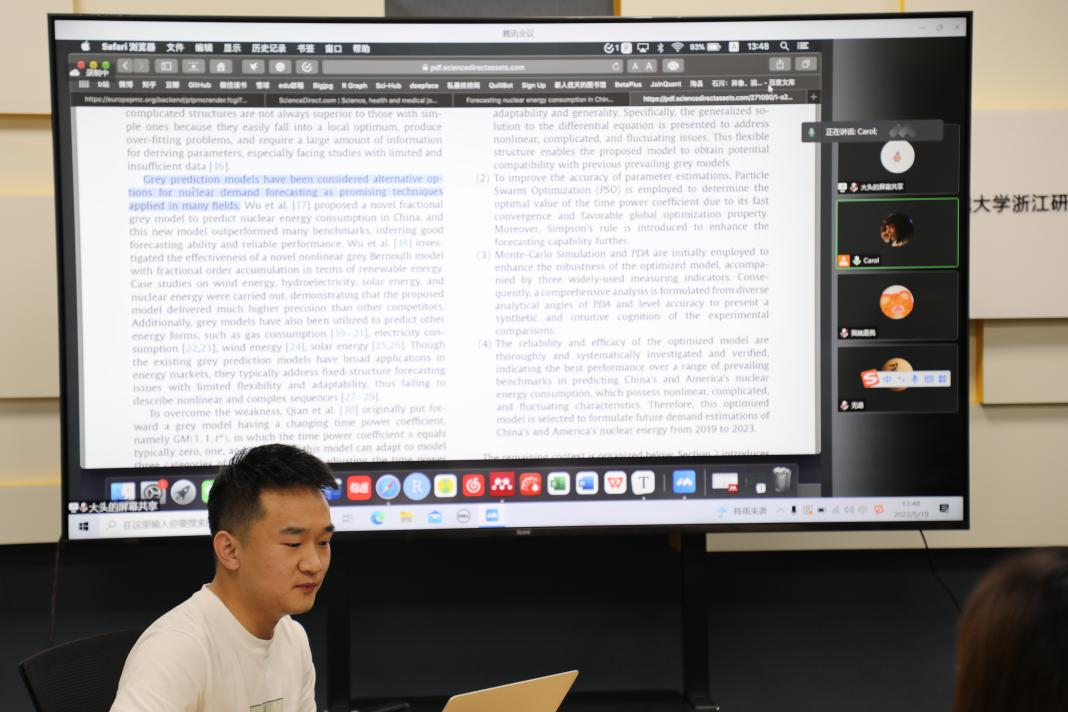 活动上,张华汉同学主要阐述了其论文“Forecasting nuclear energy consumption in China and America: An optimized structure-adaptative grey model”的主要内容及其写作的心路历程和可借鉴的方法。左立国同学就其论文“加快建设全国统一大市场背景下的数据要素市场构建”按章节对如何发挥政府有效作用,科学认识、高度重视、统筹谋划、有序推进数据要素统一市场建设分条缕析,让同学们对该主题有了更为详细的了解,阐述过后,左立国同学还分享了其写作的方法和过程。在作者们汇报之后,童光辉老师和ag真人