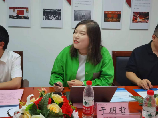 金融科技系副主任于明哲从学科交叉、课程设置、课程思政三方面介绍了专业建设情况,并就这次调研关注的培养模式等重点问题进行了解释。团委书记赵蕾介绍了学院党团建设中紧跟时政时事、结合学科专业、注重孵化实践成果的三大特色和取得的系列成绩。