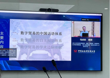 10月30日下午,浙江大学求是特聘教授、国家二级教授、教育部长江学者特聘教授,浙江大学中国数字贸易研究院院长马述忠应邀作题为“数字贸易的话语体系与知识体系”的专题讲座。本讲座由中国社会科学院大学经济学院执行院长、教授张涛主持,ag真人