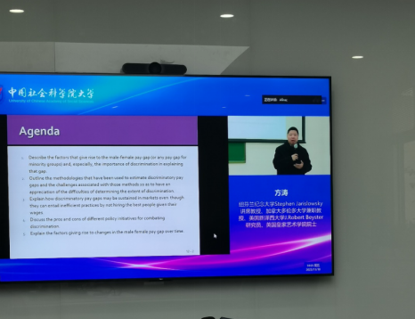 11月10日下午,方涛教授--纽芬兰纪念大学Stephen Jarislowsky讲席教授,加拿大多伦多大学兼职教授,美国新泽西大学J. Robert Beyster研究员,英国皇家艺术学院院士应邀作题为“男女工资差异和劳动力市场中的歧视现象:理论问题、实证研究与公共政策”的讲座,讲座由中国社会科学院大学副校长高文书教授主持,ag真人
