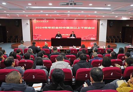 会议强调,2024年全校上下要以“浙财发展有我”的担当,以“昼无为,夜不寐”的精神,“崇实创新”走新路,“唯实惟先”创一流,同心同德,开拓进取,以优异成绩向建校50周年华诞献礼,以实际行动回答好“强国建设,浙财何为”时代命题,为勇当先行者、谱写新篇章作出新的更大贡献。