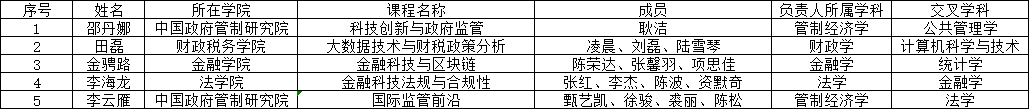 为了落实立德树人的根本任务,推动交叉学科人才培养的教学建设,促进跨学科教育内容的深度融合,提高交叉学科研究生教育教学质量,经本人申请、部门推荐、校外专家评审推荐,确定“科技创新与政府监管”等5门课程为研究生学科交叉课程建设立项。现将立项结果予以公布(具体名单见附件)。